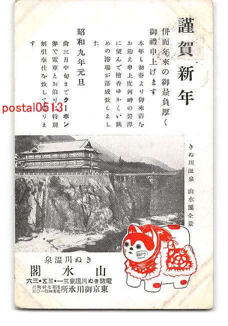 栃木 きぬ川温泉 山水閣全景 実逓便エンタイア *アルバム跡有り
