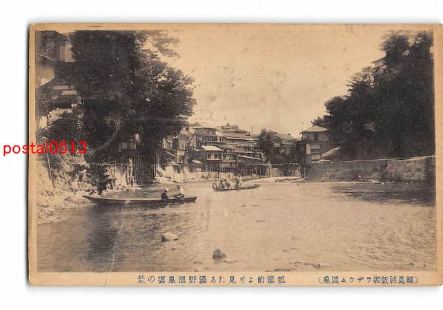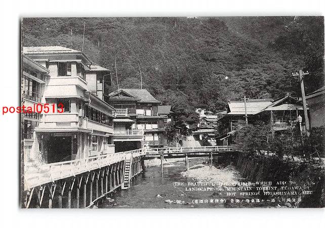 福島 谿流湯川に添へる温泉場の美景 会津東山温泉 *折れ有り