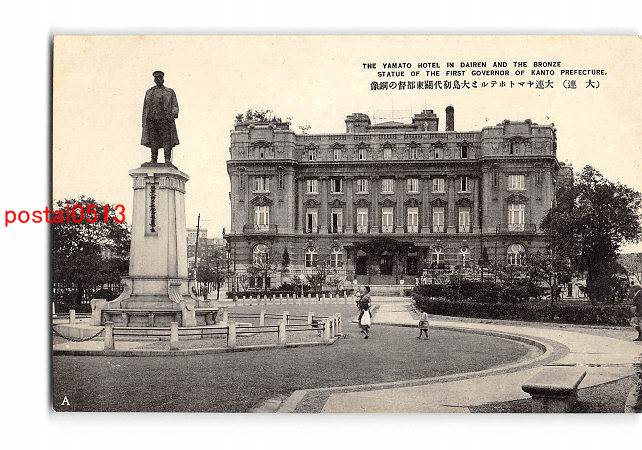 満州 大連 大連ヤマトホテルと大島初代関東都督の銅像 *アルバム跡有り