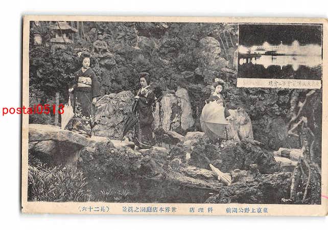 東京 上野公園前 料理店 世界本店庭園の真景 その26 *傷み有り
