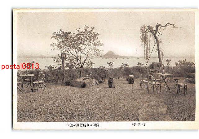 滋賀 竹清楼 庭園より琵琶湖を望む