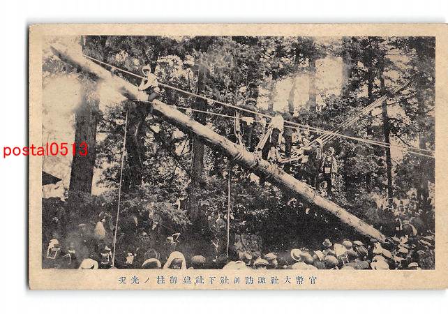 長野 官幣大社諏訪神社下社建御柱の光況