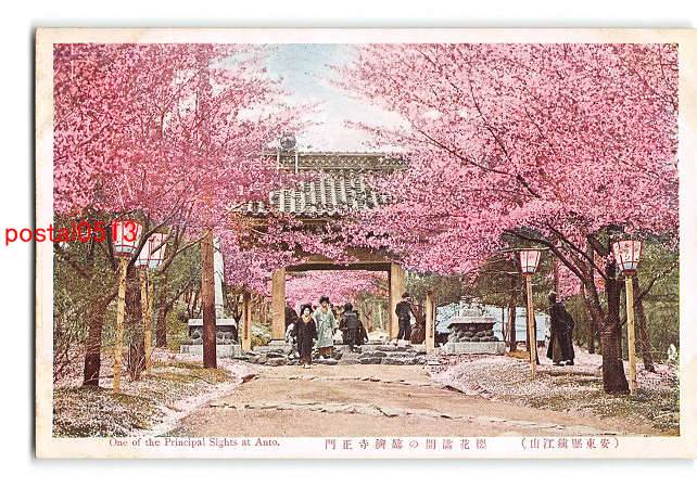 満州 安東県鎮江山 桜花満開の臨済寺正門 *アルバム跡有り