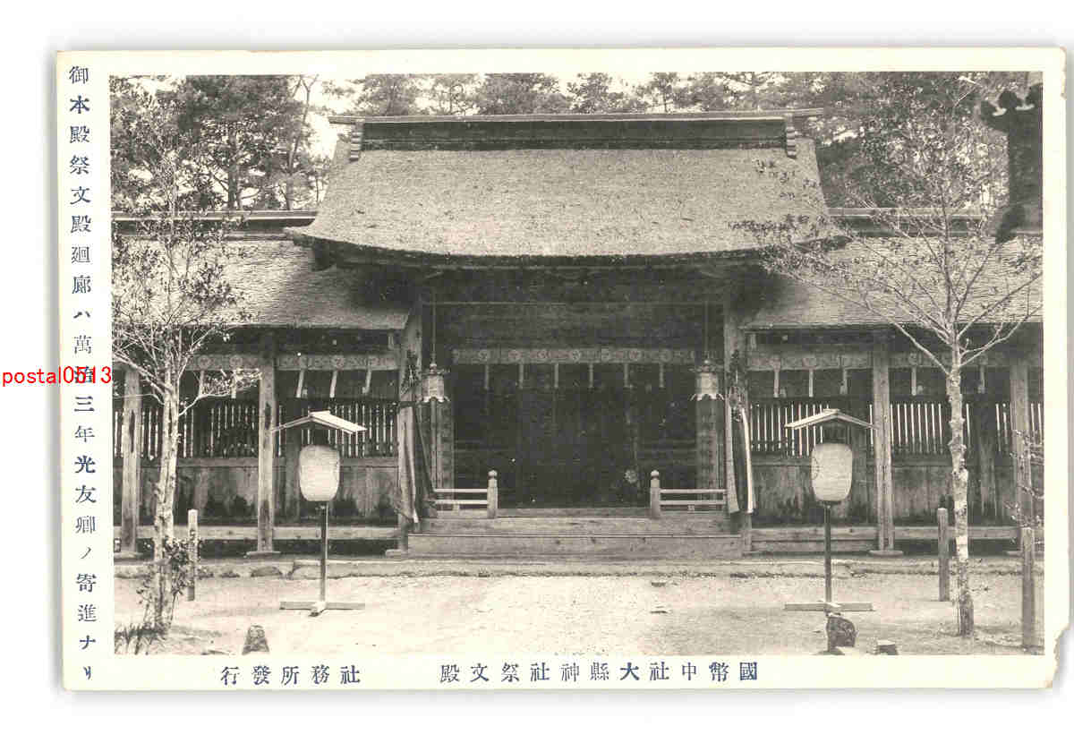 御本殿祭文殿廻廊は萬治3年光友卿の寄進なり 国幣中社大縣神社祭文殿 *傷み有り