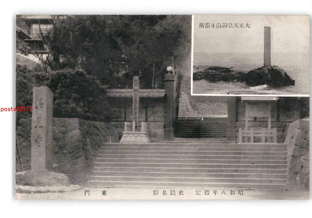 大正天皇御海水浴所 昭和8年指定 史蹟名勝 東門 清見寺 *傷み有り