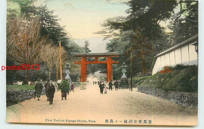 奈良 手彩色 春日神社一の鳥居 *傷み有り