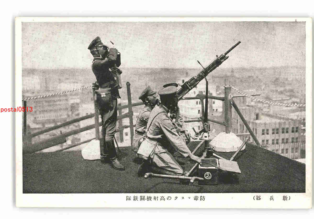 軍隊 新兵器 防毒マスクの高射機関銃隊 *傷み有り