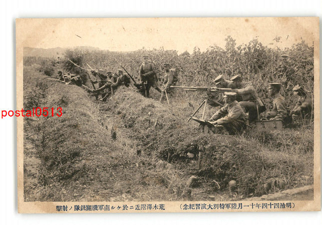 福岡 明治44年11月陸軍特別大演習紀念 荒木澤附近に於ける南軍機関銃隊の射撃 *傷み有り