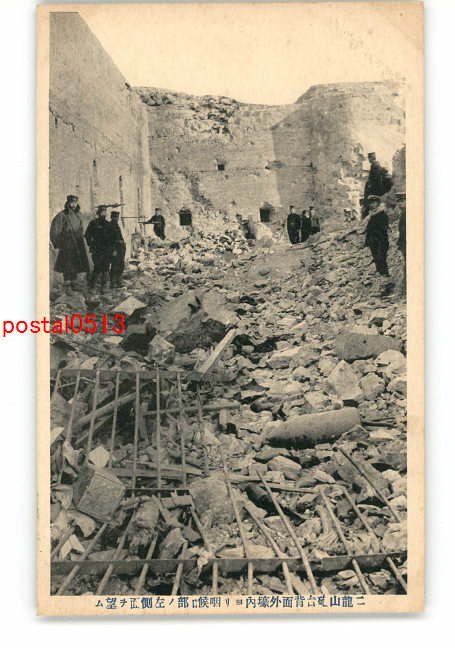 満州 二龍山砲台背面壕内より咽喉部の左側面を望む *傷み有り