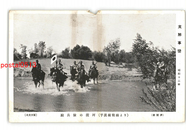 満州 支那事変 昭和12年 騎兵隊の渡河 平漢線戦線より *傷み有り
