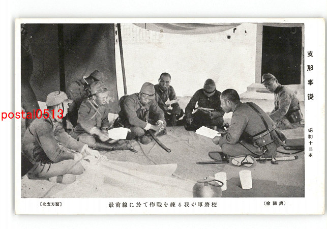 満州 支那事変 昭和12年 北支方面 最前線に於て作戦を練る我が軍将校 *ピン穴有り *傷み有り