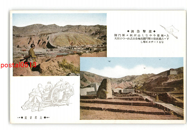 満州 支那事変 敵影今やなし山河秋々雁門関 占據直後の雁門関高地全山 *傷み有り