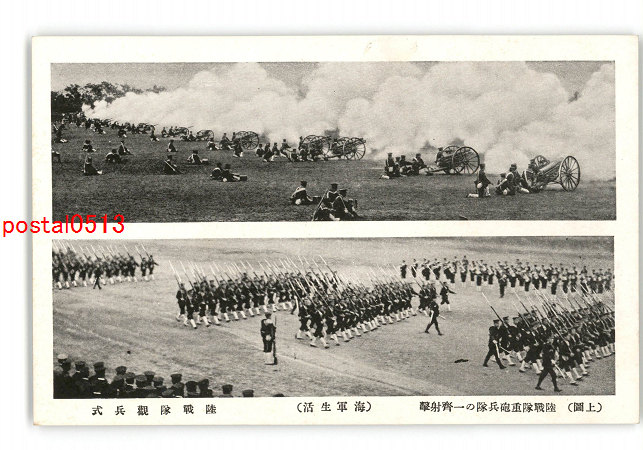 上図 陸戦隊重砲兵隊の一斉射撃 海軍生活 陸戦隊観兵式 *傷み有り