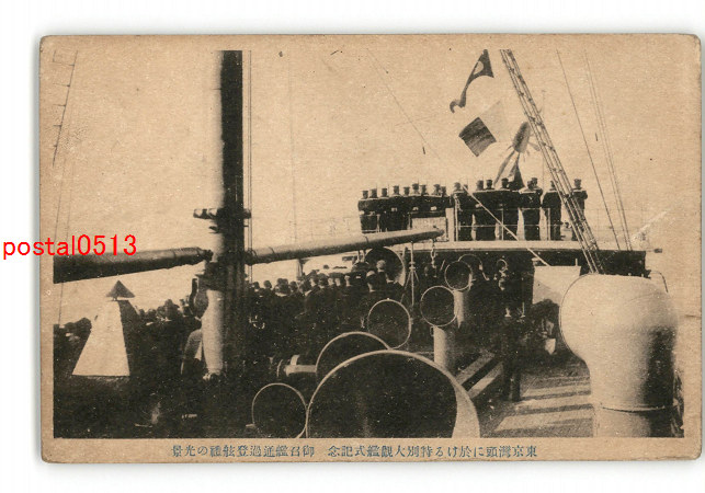 東京湾頭に於ける特別大観艦式記念 御召艦通過登舷禮の光景 *傷み有り