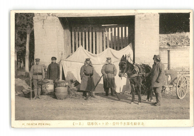 満州 北京駐屯隊冬季野営に於ける炊事場 その1 *傷み有り