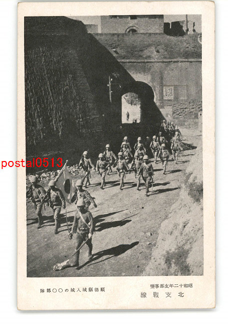 満州 昭和12年支那事変 順徳縣城入城の〇〇部隊 北支戦線 *傷み有り