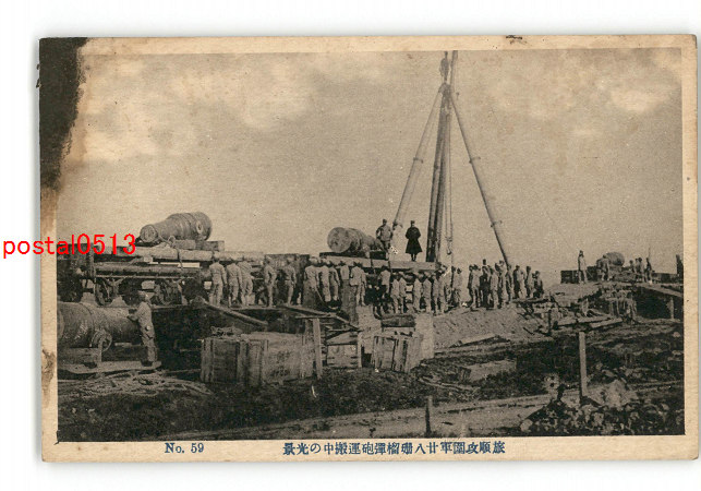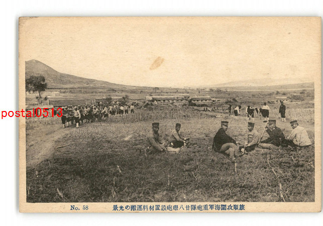 満州 旅順攻圍海軍銃砲隊28珊砲設置材料運搬の光景 *傷み有り