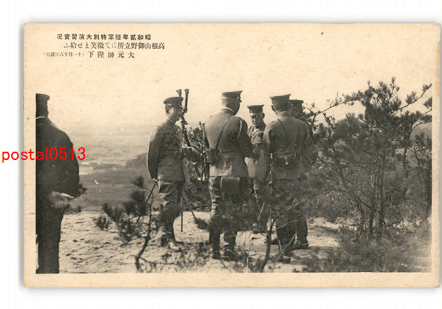 昭和2年陸軍特別大演習実況 高根山御野立所にて微笑ませ給ふ 大元師陛下 *傷み有り