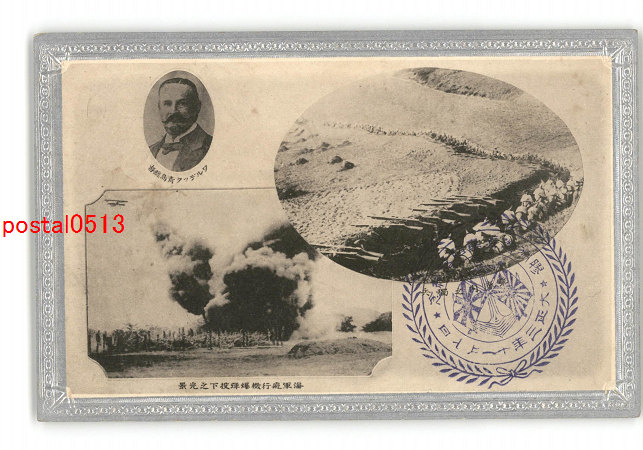 日独戦争 膠州湾 塹壕内の独兵 海軍飛行機爆弾投下 *傷み有り