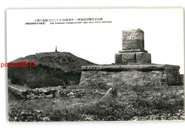 満州 旅順老虎溝山記念碑 一名赤坂山 より203高地を望む *傷み有り