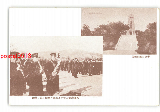 満州 青島日本忠魂碑 忠魂碑前に於ける海軍々楽隊と海の精鋭 *傷み有り