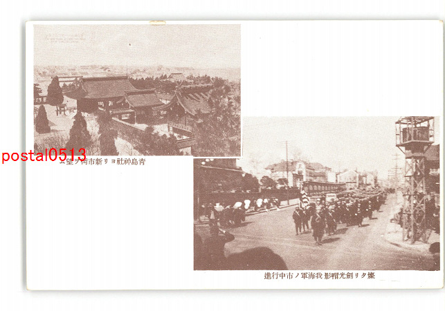 満州 燦たり剣光帽影 我海軍の市中行進 青島神社より新市街を望む *傷み有り