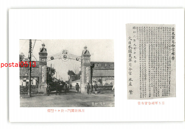 満州 日本軍司令官布国 吉林新開門に於ける警備 *傷み有り