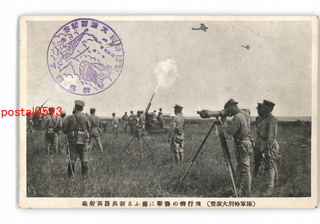 陸軍特別大演習 飛行機の襲撃に備ふる新兵器高射砲 *傷み有り