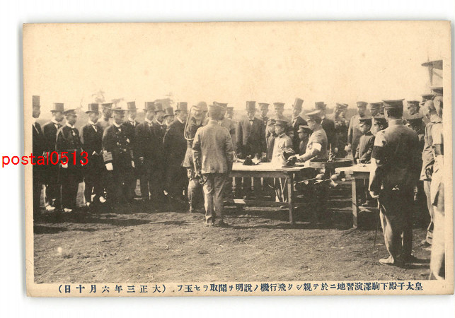 皇太子殿下駒沢演習地に於て親しく飛行機の説明を聞取らせ玉ふ 大正3年6月10日 *傷み有り