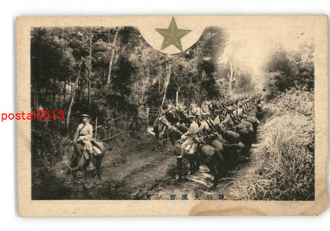 陸軍特別大演習記念 狭い道で整列の騎兵 *傷み有り