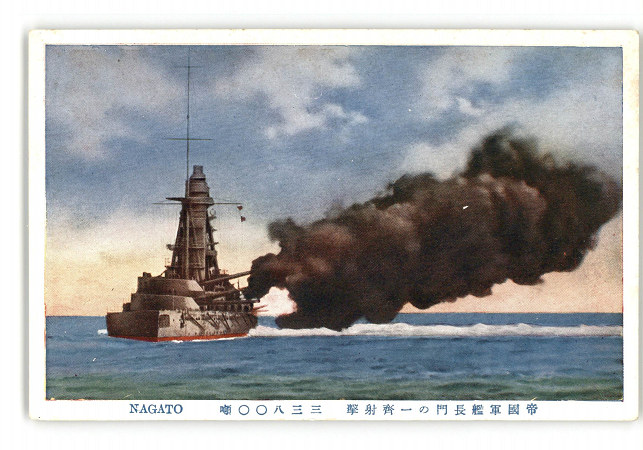 帝国軍艦長門の一斉射撃 33800噸 *傷み有り