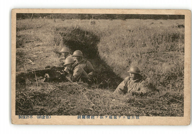 軍隊生活 散兵壕にて猛威を振ふ軽機関銃 *傷み有り