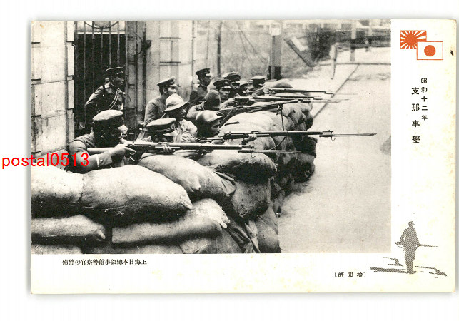 満州 昭和12年 支那事変 上海日本総領事館警察官の警備 *傷み有り