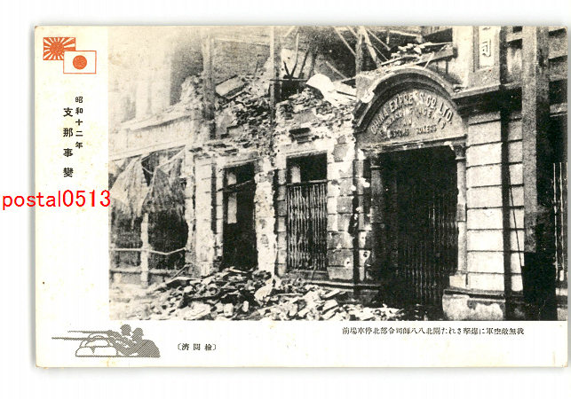 満州 昭和12年 支那事変 我無敵空軍に爆撃された閘北八八師司令部北停車場前 *傷み有り