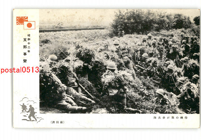 満州 昭和12年 支那事変 待機の我が歩兵隊 *傷み有り