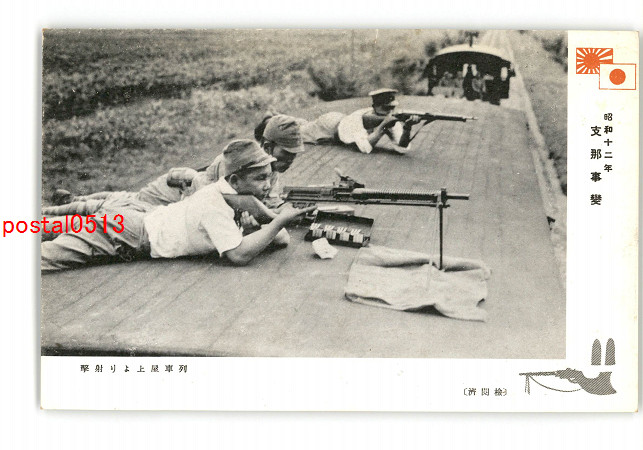 満州 昭和12年 支那事変 列車屋上より射撃 *傷み有り
