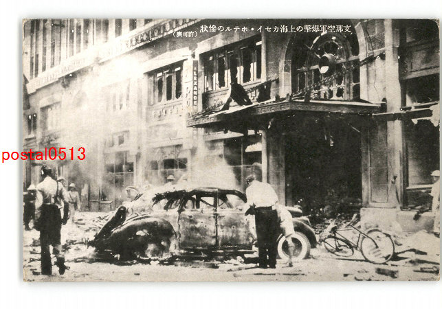 満州 支那空軍爆撃の上海カセイホテルの惨状 *傷み有り