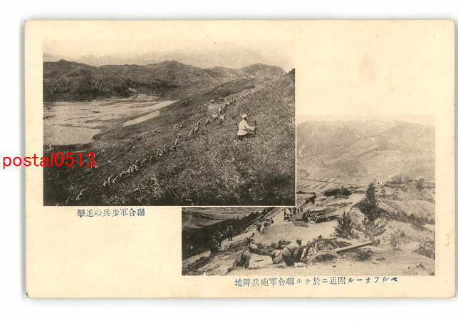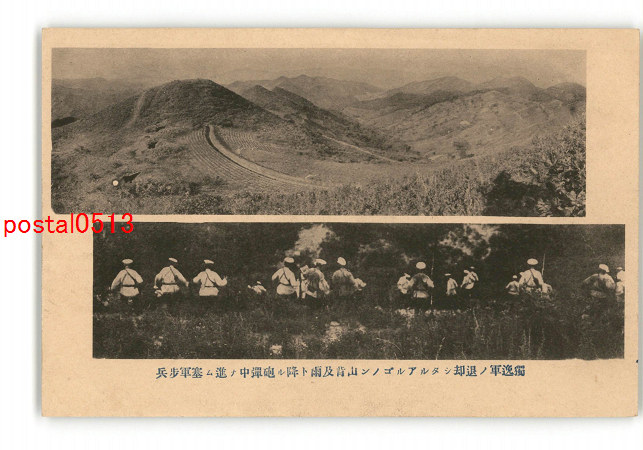 独逸軍の退去したるアルゴノン山背及雨と降る砲弾中の進む寒軍歩兵 *傷み有り