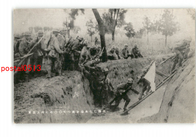 満州 占據した水濠を渡つて〇〇屯に向ふ皇軍 *傷み有り