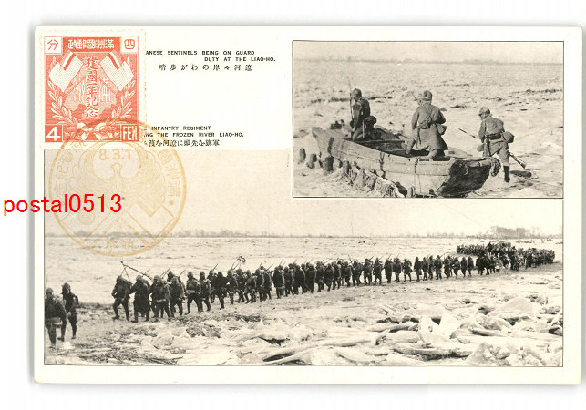 満州 遼河々岸のわが歩硝 軍旗を先頭に遼河を渡る *傷み有り
