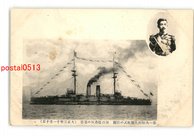第一次恒例大観艦式の壮観 御召艦香取の雄姿 大正2年11月10日 *傷み有り