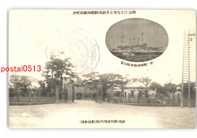 新潟 明治39年7月新潟県艦隊歓迎紀念 第一艦隊旗艦軍艦出雲 物産陳列館 歓迎会場 *傷み有り