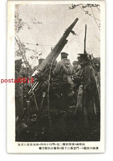 高射砲 著弾距離二里 飛行14秒 弾丸1貫600匁 償格14圓 一門13000圓 *傷み有り