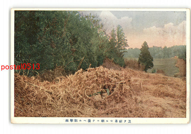 芝を結著せる網にて覆へる狙撃砲 *傷み有り