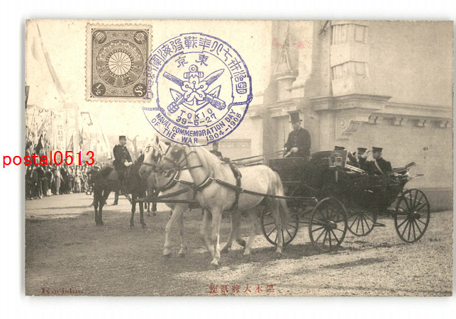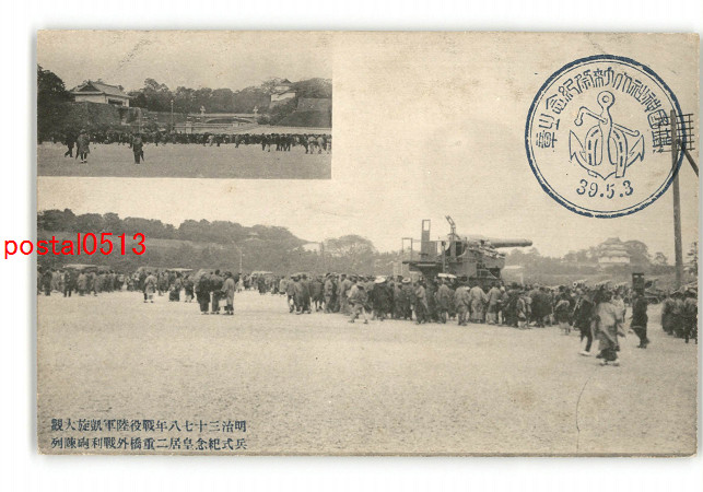 明治37.8年戦役陸軍凱旋大観 兵式紀念皇居二重橋外戦利砲陳列 *傷み有り