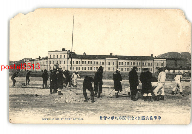 満州 旅順 海軍衛兵隊側の池中堅氷切取の実景 *傷み有り