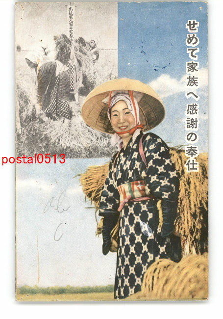愛国婦人会 出征勇士留守宅の稲刈にいそしむ会員 *傷み有り