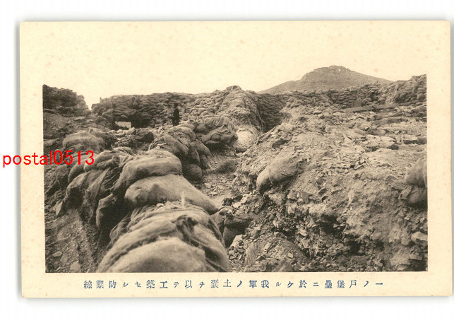 満州 一ノ戸堡塁に於ける我軍の土嚢を以て工築せる防禦線 *傷み有り