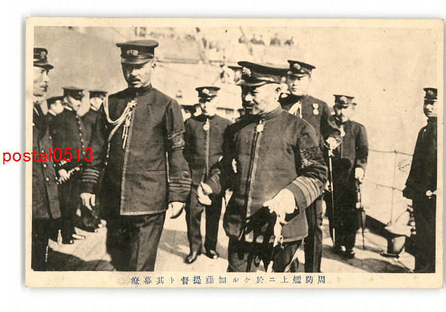 周防艦上に於ける加藤提督とその幕僚 *傷み有り