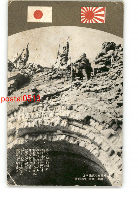 満州 城壁高く萬歳叫ぶ敵壘一番乗りの我が勇士 *傷み有り